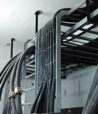 Execução e adequação de eletrocalhas, perfilados e eletrodutos para baixa e média tensão.